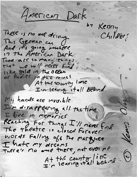Includes a print of handwritten lyrics by songwriter Kenny Childers for the title track of 'American Dark'. Digital download code included with record!